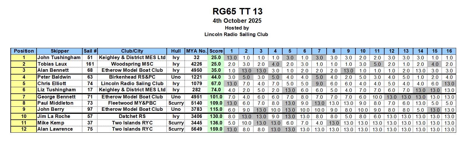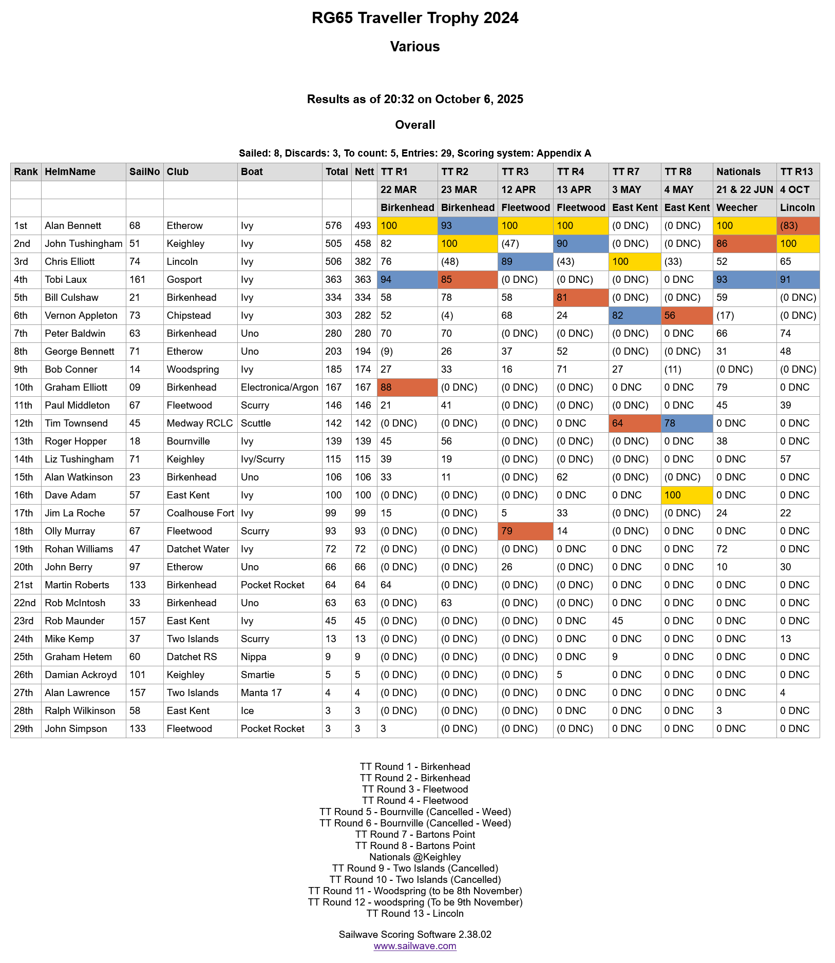 As the full results sheet below will show, Alan Bennett not surprisingly won the day on 25 points, with Tobias Laux second on 32 points and then Graham Elliott in third on 41. It was close for fourth to seventh place with only 6 points separating these 4 boats.